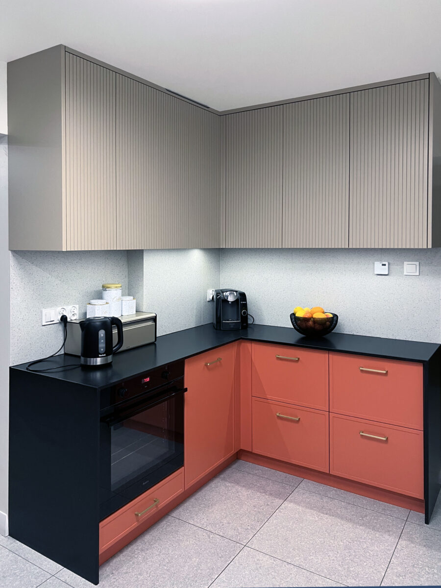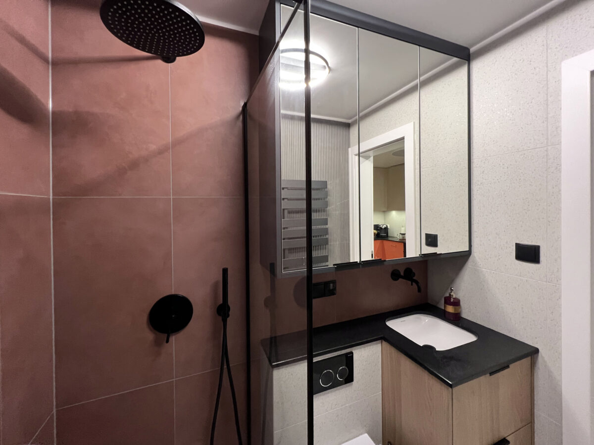 Projekt apartamentu Light Tower w Redzie ze wspaniałym widokiem na panoramę miasta oraz Rumi. Kobiece mieszkanie z zaprojektowanymi meblami przez stolarza, które pomieściły wszystkie najważniejsze aspekty, jak pralka, suszarka oraz wielkogabarytowe przedmioty w szafach z frontami lustrzanymi, które dodały lekkości w pomieszczeniach.
