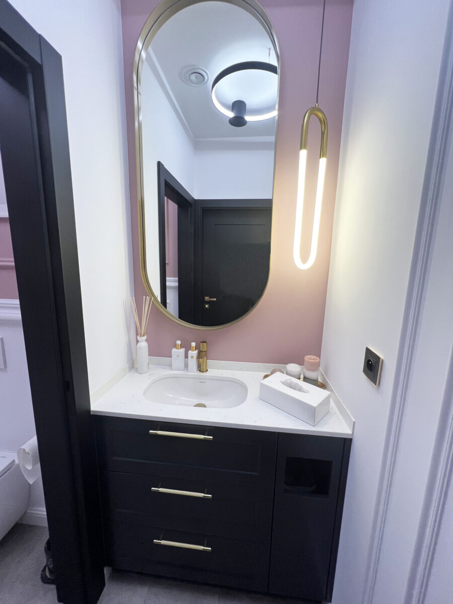 Świetnym rozwiązaniem jest mobilne stanowisko, które posiada dwustronne lustro oraz kółka, co przy takim gabarycie i obciążeniu jest nie lada wyzwaniem by stworzyć je nie tylko pięknym ale praktycznym.
